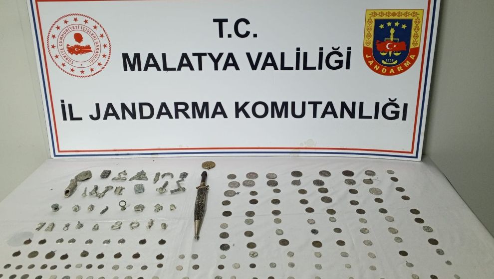 Battalgazi’de yapılan operasyonda 144 sikke, 1 kama ve 28 tarihi obje ele geçirildi. Bir şüpheli hakkında adli işlem başlatıldı.