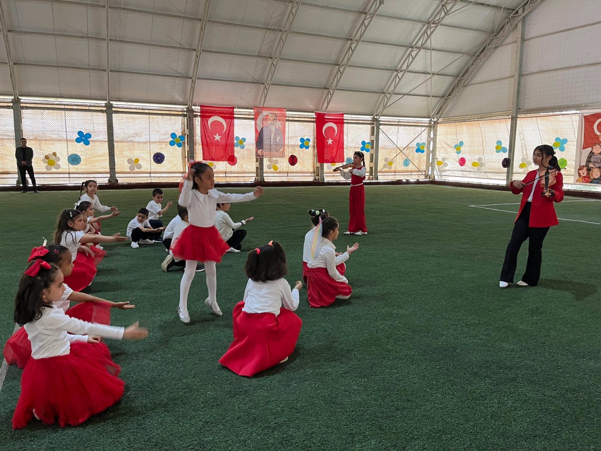 Şehit Türkan Türkmen Tekin İlkokulu ve Ortaokulu öğrencilerinin hazırladığı halk oyunları, ront gösterileri ve okunan şiirler izleyiciler tarafından ilgiyle takip edildi. Çocukların bayram sevincine ortak olan protokol üyeleri, program sonunda öğrenci ve öğretmenleri tebrik etti. Renkli görüntülerin yaşandığı kutlamalar, hatıra fotoğrafı çekimiyle sona erdi.