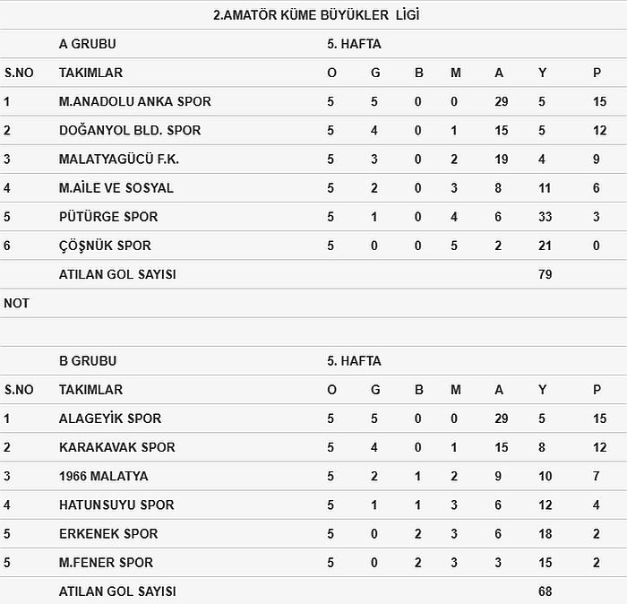 Bu sonuçların ardından ligin A ve B gruplarındaki puan sıralaması şöyle: